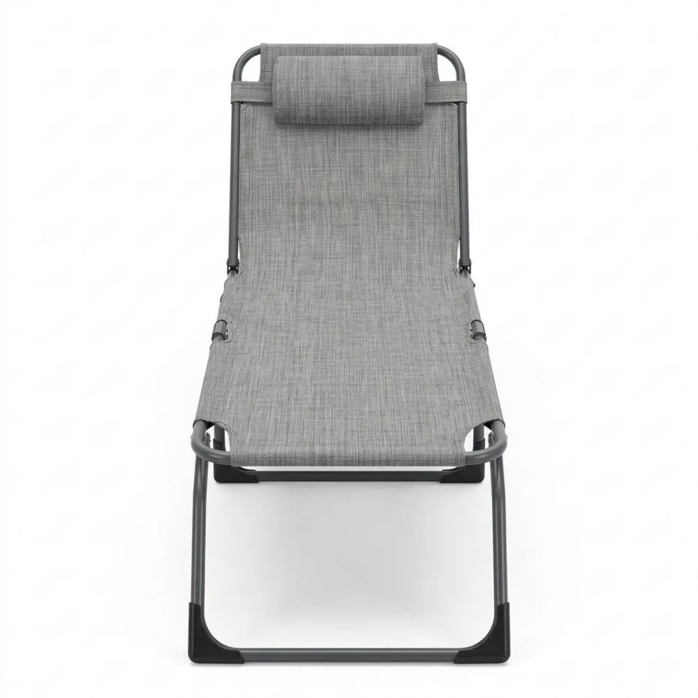 Klappbare Gartenliege Stahl Textilene Grau mit Abnehmbarem Kopfstütze