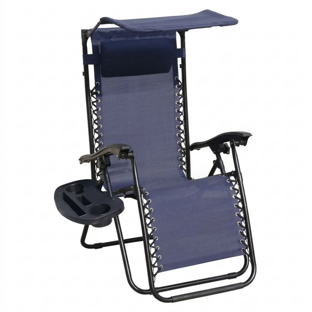 Stahlrahmen Liegestuhl Textilene-Gewebe Blau mit Sonnendach