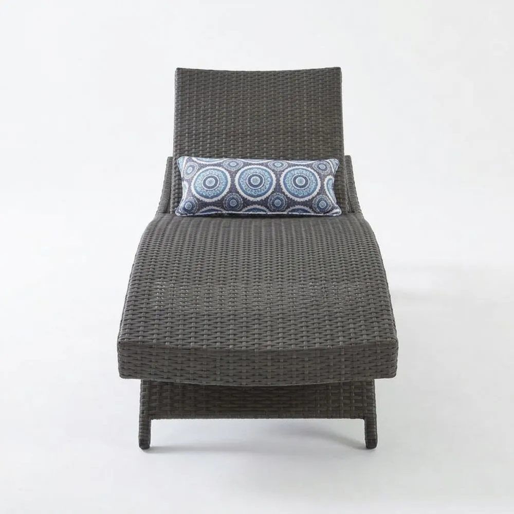 Verstellbare Gartenliege aus Rattan grau mit Kissen