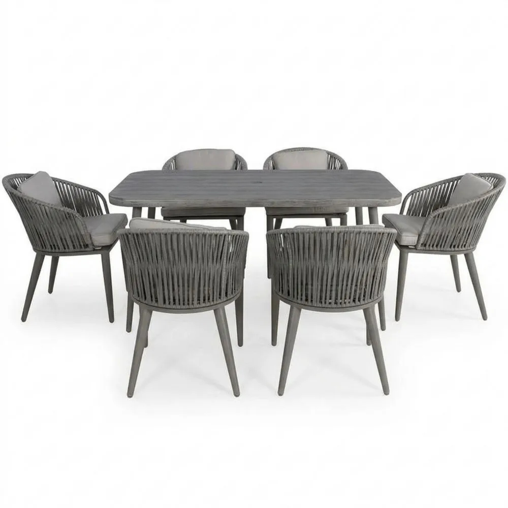 7-teilige Garten-Essgruppe Aluminium mit Polyestergeflecht Grau